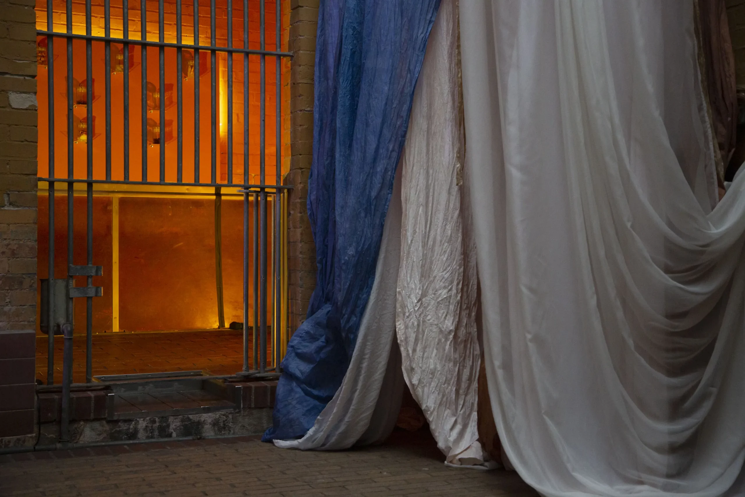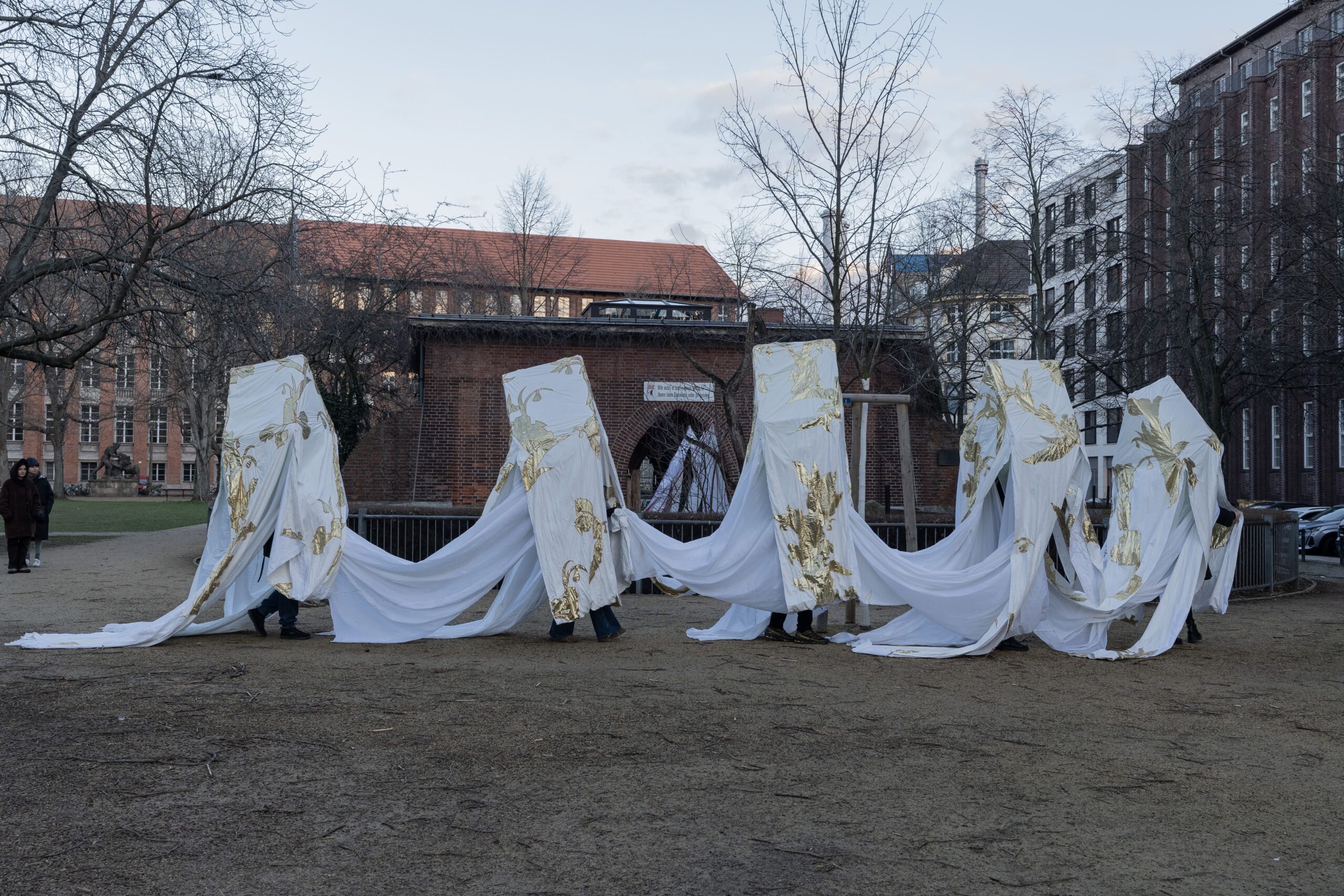 On February 4, the textile works of Artist in Residence Stephanie Imbeau will experience a rare use when sound-performance-duo Narval invites us to listen together to their sounds which will be shaped by the wintry Bärenzwinger and Imbeau’s installation. The space is activated by small acoustic gestures as well as spatial resonances. In this site-specific performance, the duo uses acoustic feedbacks, prepared objects, homemade instruments, as well as parts of Stephanie Imbeau’s installation in order to interweave the spatial actions and their sounds with the notion of shelter, house, and prison.